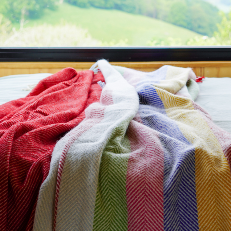 Wide Stripe Pure New Wool Throw - Petrol & Blue Slate