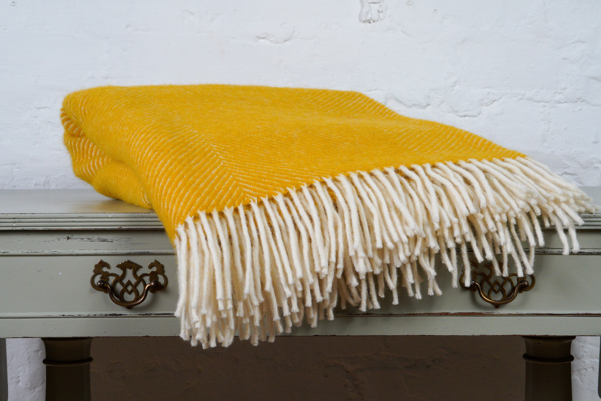 Wide Fishbone Pure New Wool Throw – Yellow